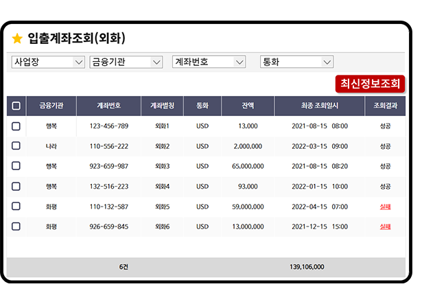 등록된 모든 은행 외화입출식예금 계좌의 잔액과